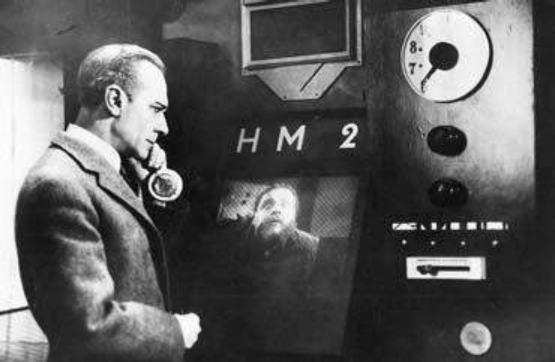 El cine de ciencia ficción ha incluido desde siempre la imagen de la pantalla dentro de su propia pantalla. En general son herramientas de control y adoctrinamiento de un poder opresivo. El ejemplo paradigmático, Farenheit 451 (François Truffaut, 1966) denuncia la función ideológica de la televisión. Sin embargo, cuando se filmó Metrópolis (Fritz Lang, 1927) no existía la televisión ni los monitores de computadoras, y esta fue la primera aparición de las pantallas dentro del cine. Por eso cuando el jefe se comunica con su capataz por una pantalla, el único referente que la misma tenía era la propia pantalla de cine. Ahora bien, pensemos en la escenografía del film: rascacielos, autopistas y una ciudad subterránea son los elementos futuristas en los que se incluye también esa pantalla. Es decir que el cine se considera a sí mismo un producto digno de la ciencia ficción, un dispositivo llegado del futuro.