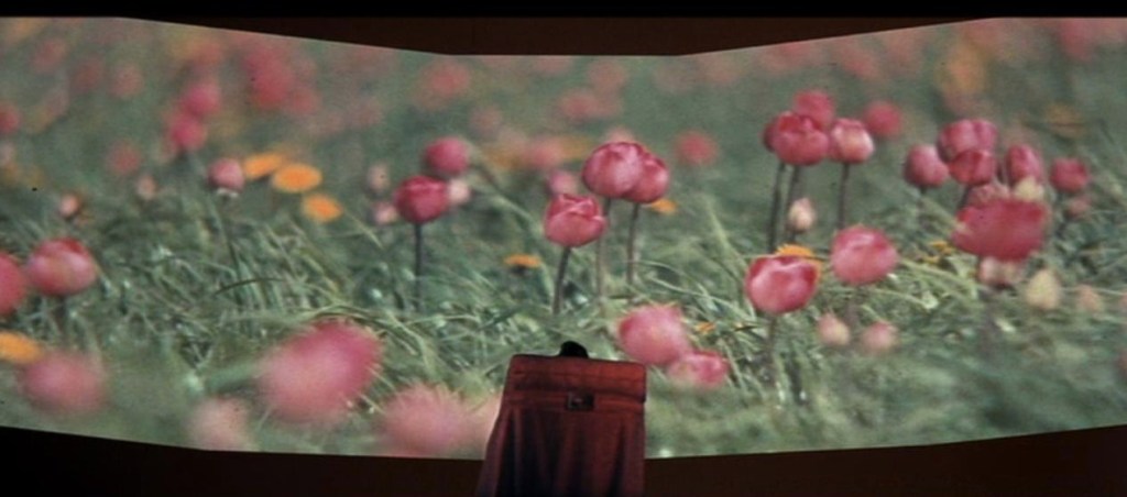 Esta es la primera pantalla de grandes dimensiones que aparece en la película. Nuevamente tenemos la representación de algo ausente, pero en este caso se trata de una realidad desconocida para quien mira, se rescata el cine como fuente de conocimiento y de placer, un ritual íntimo y significativo, en extremo diferente a la televisión.