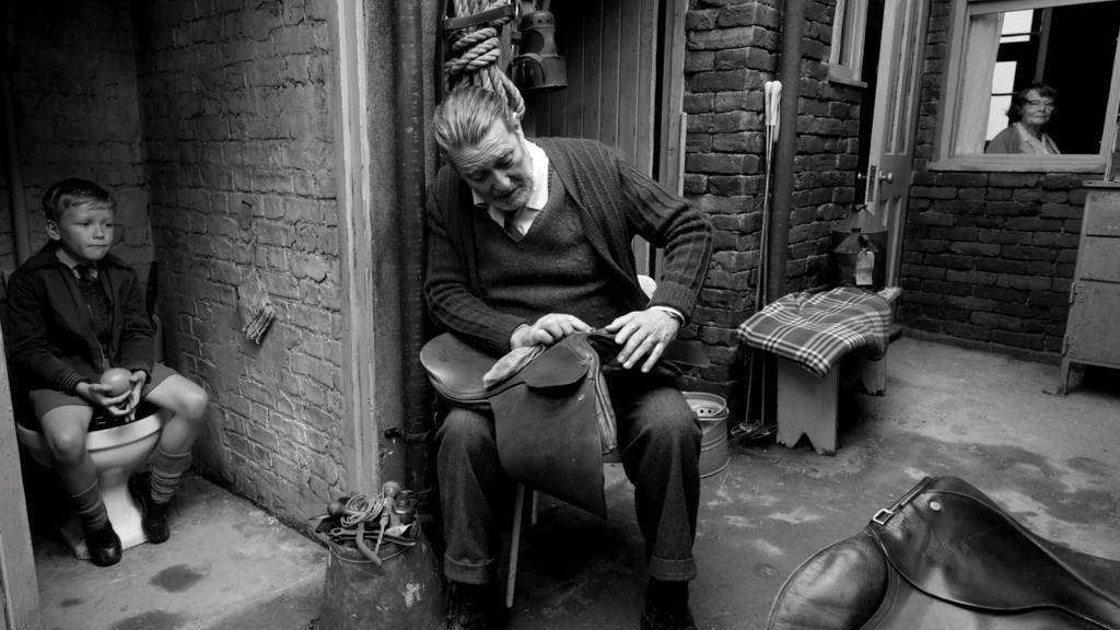 Es que, por supuesto, Branagh habla de su infancia y de la ineludible influencia que el cine y la tv tuvieron en él, y lo hace en un doble sentido. Por un lado, la salida al cine o al teatro con sus padres o su abuela son grandes momentos familiares y, curiosamente, la pantalla o el escenario es el lugar del color. En segundo término, muchas escenas se ven enmarcadas o divididas por puertas, ventanas o similares. Este efecto del cuadro dentro del cuadro nos vuelve a todos espectadores de este universo, incluyendo al director, y los personajes que complementan las escenas. Todos los estamos viendo, y ellos también se ven, en su propia historia.